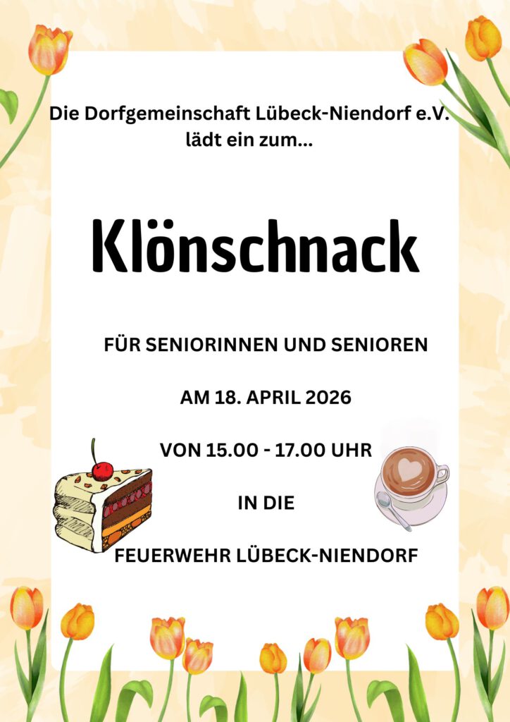Wir sorgen wieder dafür, dass unser schönes Lübeck-Niendorf noch schöner wird. Wir treffen uns am Samstag, 15. März 2025 um 10.00 Uhr bei der Feuerwehr in Lübeck-Niendorf. Müllsäcke, Greifer und Handschuhe sind vorhanden.
